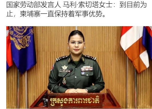 前兩天柬埔寨國防部發言人瑪麗表示柬埔寨目前保存軍事優勢這段話棉花絮還真的有點聽不懂呀,又是印度贏學。(備註:底下的報道機翻有誤,不是勞動部發言人)
