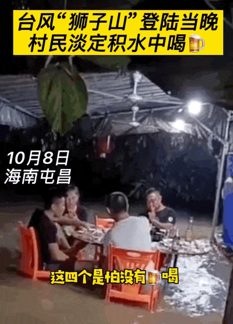 颱風“獅子山”登陸海南島的當晚,洪水漫進了無數海南人的屋內,面對天災,他們穩如泰山,依舊該喝酒喝酒,該吃飯吃飯,還美其名曰“水財水財”。