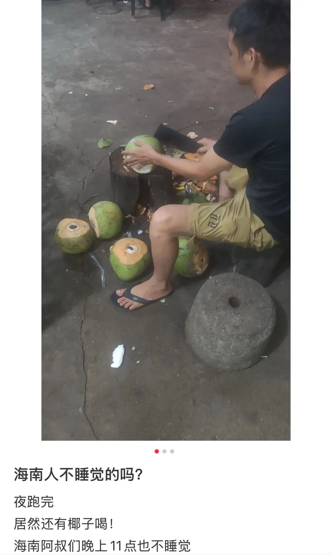 有人晚上11點夜跑結束,發現開了一整天的椰子攤依舊在營業;