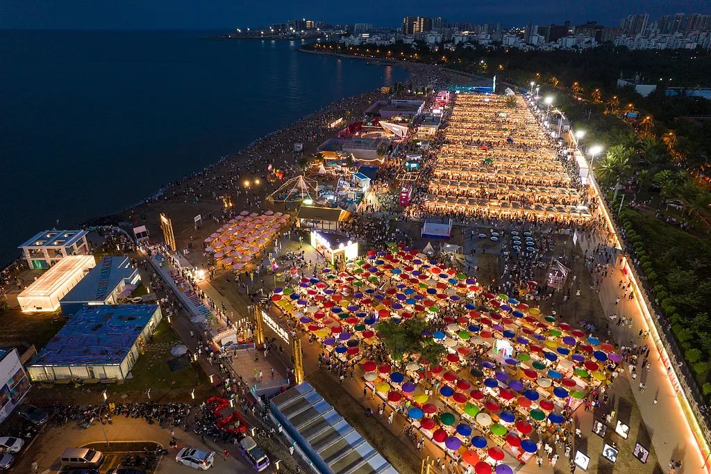 海南是一座四面環海、中部多山地的海島,90%以上的人口都集中在平坦的環島沿海地帶。綿長的海岸線催生了繁榮的“夜經濟”,夜市、燒烤攤、音樂酒吧在海南島長盛不衰,使其擁有了豐富的夜生活。
