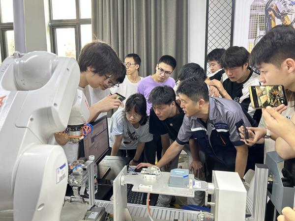 “不同於課堂上的理論案例,這裏的每一台設備、每一條產線都與企業實際生產無縫對接。”學生何羽閣一邊記錄調試參數一邊説,“我們帶着課堂上的疑問來,更要帶着解決問題的能力走。”