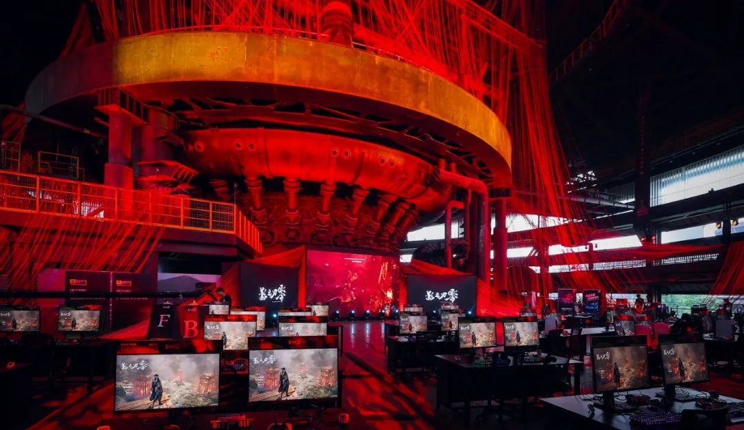 這次試玩會選址在北京首鋼園內,利用龐大的鋼鐵設施和紅絲線,搭建出了一種“武俠朋克”佈景,視覺很沉浸、很符合遊戲題材風味。現場提供了100台PC和40台PS5的體驗席位,保證了足夠的試玩人次,也同時展現了遊戲在雙端的表現水平。