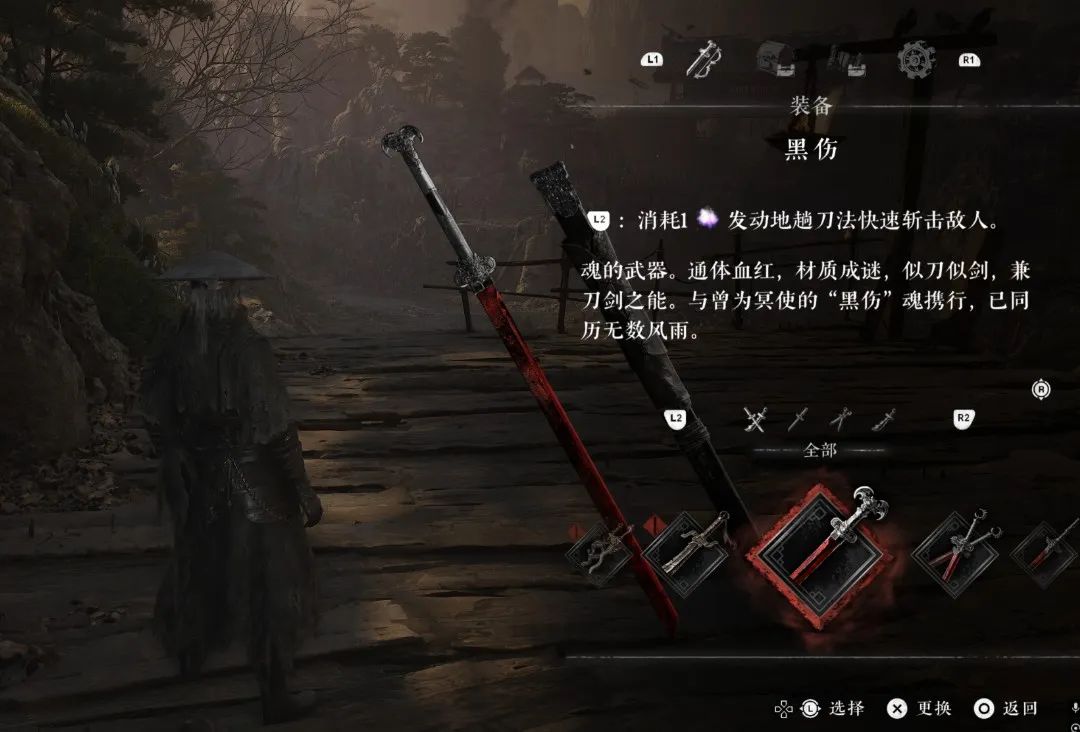 舉個例子,熟悉《影之刃》《雨血》系列的玩家應該有印象,主角有把名為“黑傷”的武器,接近武俠小説裏“倚天劍”“屠龍刀”這種神兵,但在《影之刃零》裏,這把“黑傷”就成了一把平凡的單手劍,沒有什麼特殊性能或者效果。