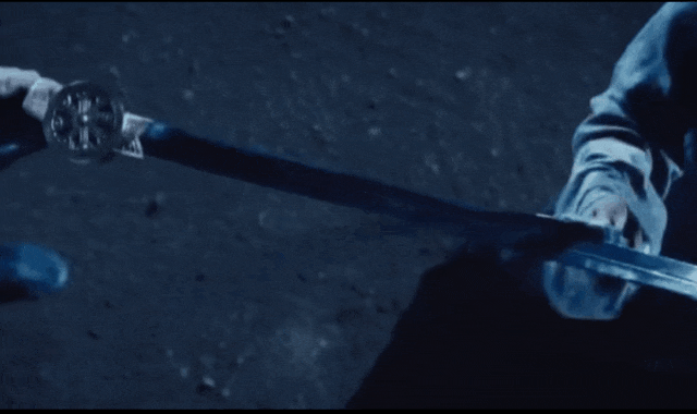 你説軟劍在現實裏有什麼實戰價值嗎?我覺得很小,正面對戰甚至都格擋不了一把普通的硬劍;但在虛構作品裏,軟劍恰恰是很多武打戲的“視覺擔當”,就比如電影《劍雨》中的闢水劍: