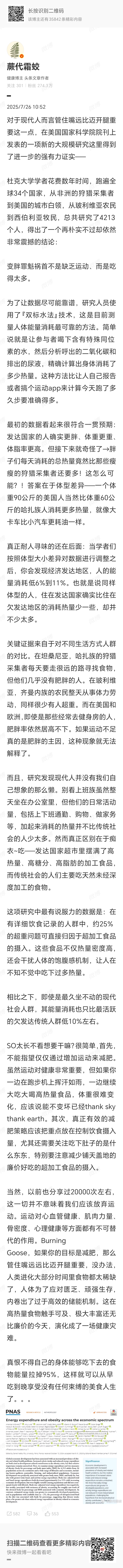 相比之下,即使是最久坐不動的現代社會人羣,其能量消耗也只比最活躍的欠發達傳統人羣低10%左右。