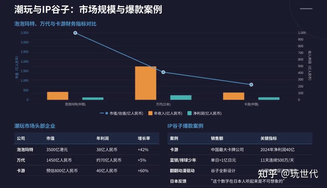 就是我剛剛的話題,這根折線拿左邊的市值來看折線最上面是3500,萬代的折線的點是萬代對應的狀態,橘黃色的是2024年的年收入,綠顏色的柱狀圖是它的利潤,大家可以感受一下。這個公司很強,但是資本市場要討論一下。