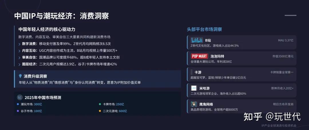 今年大家探討的最主要的主題是後端衍生品的相關收入。潮玩、IP、穀子發展的狀態是不一樣的。在2022年之後,這三個行業在高速爆發,所以這三個行業模式對於前端有IP的公司比較重要。
