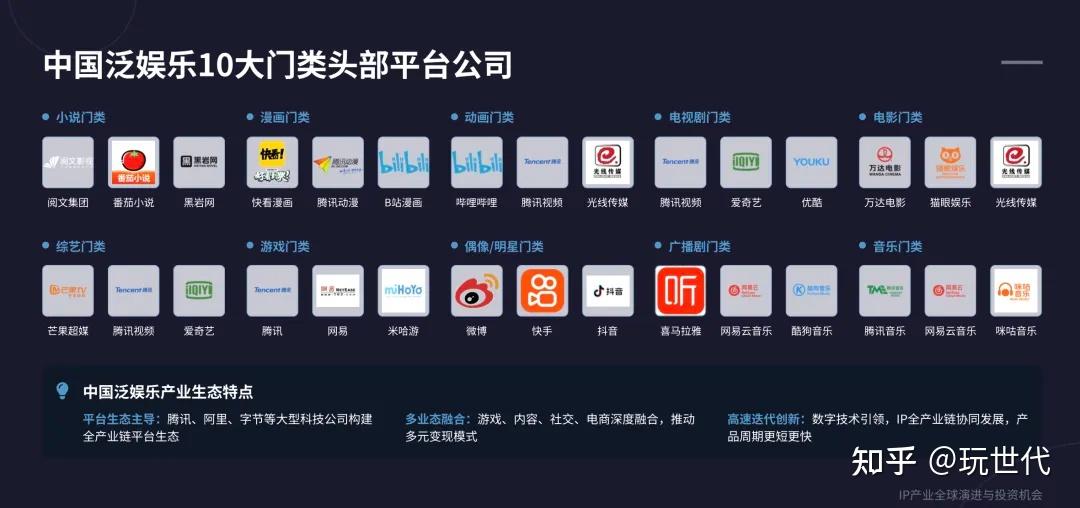 我的思路是,第一先找平台公司。因為IP產業門類太多了。電影、電視劇、綜藝、漫畫動漫、遊戲都能變成IP。因此首先要找平台公司。