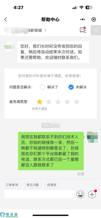 【案例一】用户投訴有贊小程序系統服務不達標 售後推諉且拒絕退款