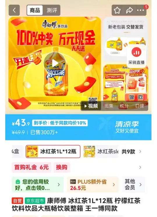 2000年“冰茶大戰”中,其憑藉“加1元容量翻倍”的1L包裝脱穎而出,成為市場領頭羊;2008年在面對可口可樂原葉茶衝擊時,依靠“再來一瓶”的高性價比活動守住市場地位;到了2023年,市場盛行“性價比風”,4元的1L裝冰紅茶大獲輕消費者青睞,上半年實現銷售額突破百億。