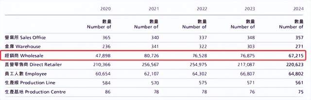 截至2024年底,公司經銷商為67215家,而2023年底為76875家,減少了9660家,為近五年來首次出現如此大的降幅。
