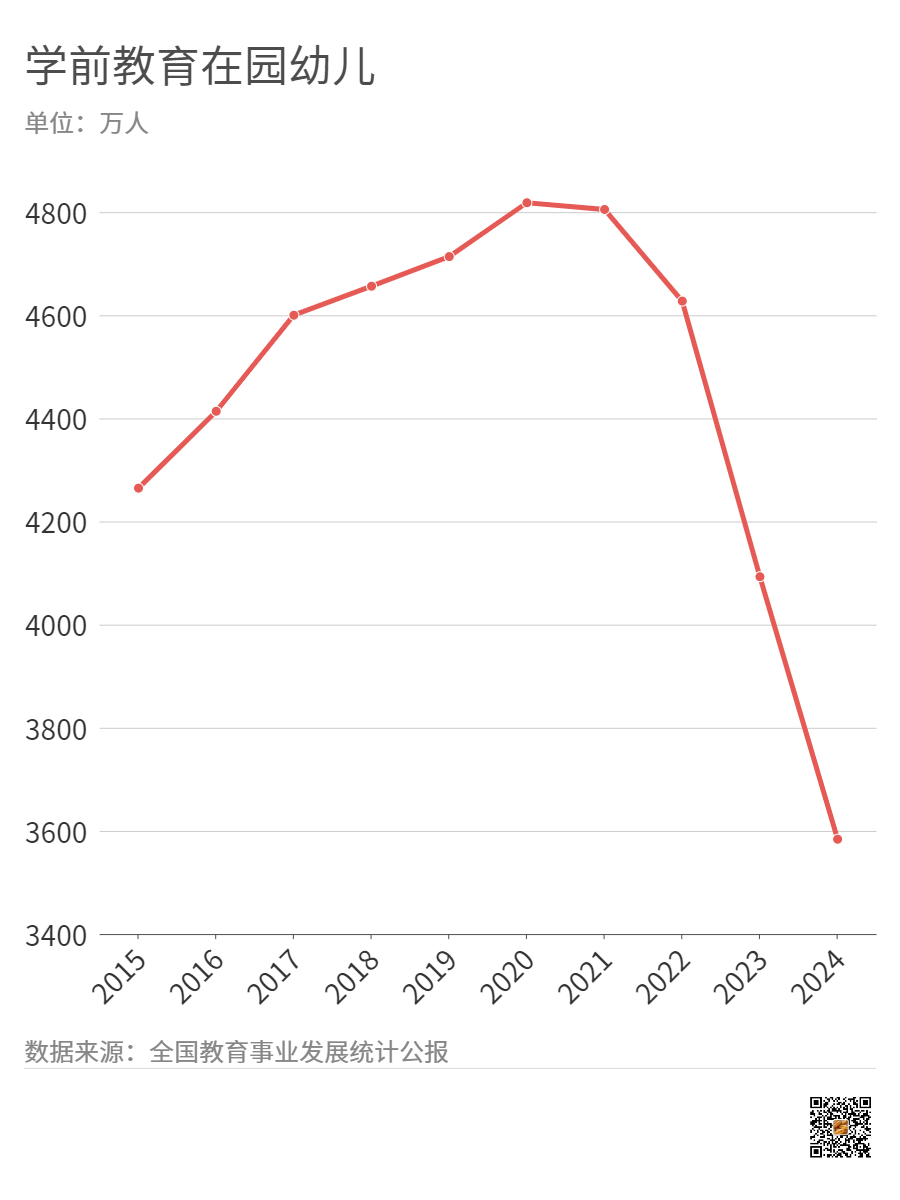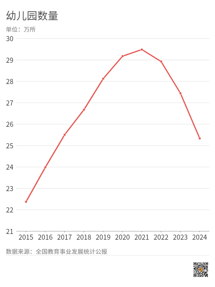 與此同時,此前在新生兒出生高峯期建立的幼兒園,也就面臨被出清的命運,近兩年更是每年一萬多所幼兒園消失。