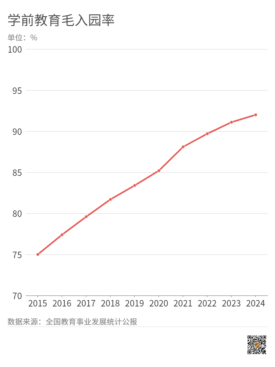 幼兒園原本的生源,挖掘潛力已經不大了——這些年學前教育毛入園率不斷提升,已經超過90%了。