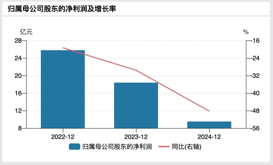 2024年,華髮股份歸母淨利潤同比大跌48.24%至9.51億元,較2023年的18.38億元近乎腰斬,更是創下2019年以來的五年新低。