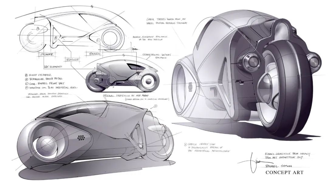 △ 席德·米德(Syd Mead)為電影《創》繪製的極速光輪概念圖