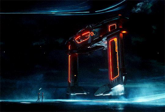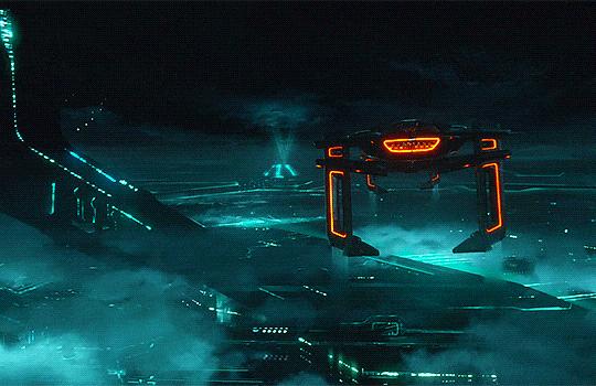 對於筆者而言,影片第一次讓我感到視覺震撼是Sam從現實世界進入到電子世界被Recognizer捕獲,飛行器在電子城市中緩緩飛過的鏡頭的場景,不僅僅是因為這是全片第一個用大量CG展現的場景,同時也是影片完全使用3D呈現的開始。