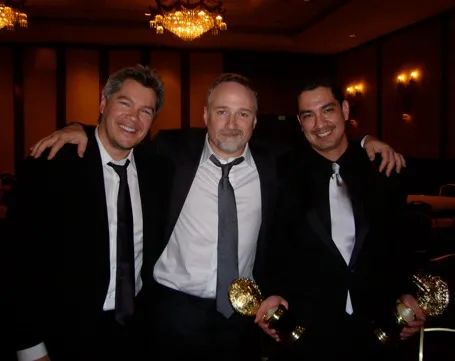 △ 奧·布里克(Ed Ulbrich), 大衞·芬奇(David Fincher), 埃裏克·巴爾巴(Eric Barba)(從左至右),2009年VES獎《本傑明·巴頓奇事》