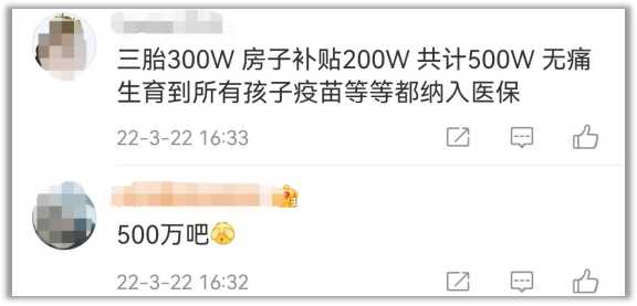 還有IP上海的網友説:“如果國家能送我上海一套房,馬上生孩子。”