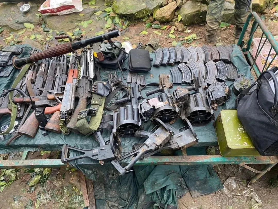 昨天有照片顯示,泰軍攻佔普馬奎山一處柬埔寨陣地繳獲一批武器,這些武器基本全都是中國造,包括多個型號的56衝、69-1式火箭筒、LG4榴彈發射器、54手槍、另有一把面目全非的上古M16。