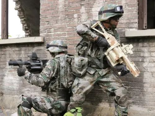而泰國軍隊士兵的軍容則相對統一,他們穿着整齊的數碼迷彩服和軍靴,佩戴頭盔,手持美式M16步槍和以色列內格夫機槍。