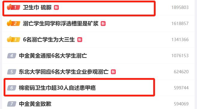 2025年5月,有網友在自媒體上曝光“棉密碼”衞生巾添加硫脲,並組織消費者集體送檢。