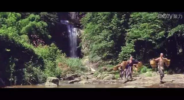 和尚們提水練功背景就是天台的石樑飛瀑。