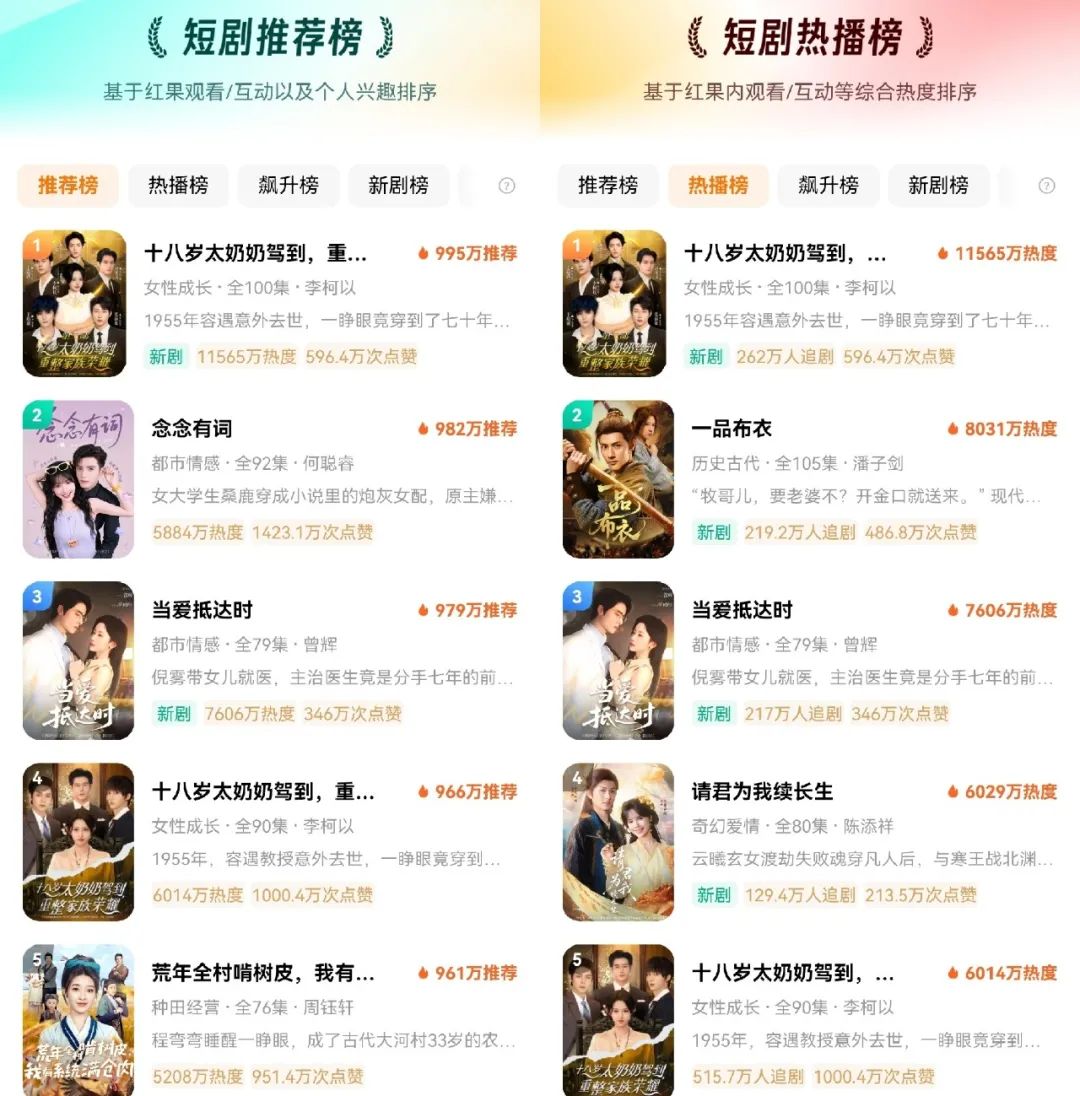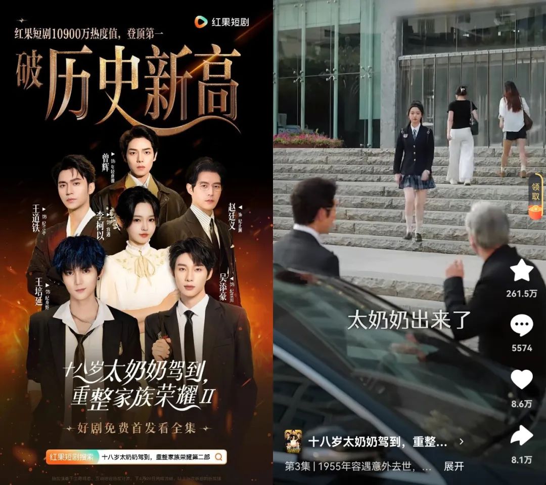 與此同時,精品短劇《十八歲太奶奶駕到,重整家族榮耀2》成紅果歷史上第一部上線首日熱度值破億的短劇,聽話島的短劇還在持續打破紅果的多項先例。