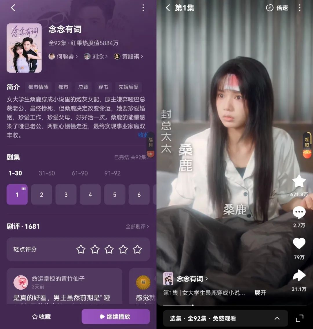 播放量的迅速攀升,不能忽略的原因之一,是免費短劇持續攻城略地之後平台自身流量和用户活躍度大舉突破,但與此同時更不能忽略的是平台推薦算法的促成。