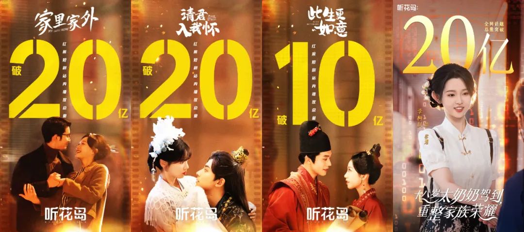 細數2025年上半年紅果10億+爆款短劇中,《唸唸有詞》《十八歲太奶奶駕到,重整家族榮耀》《家裏家外》等現象級作品均來自聽花島,平台與製作方之間的高度依賴關係已經顯現出明顯的寡頭化趨勢。甚至《唸唸有詞》也不是真正的第一個20億播放量短劇。之前的上海電視節論壇活動上,聽花島總製片人趙優秀就透露,今年上半年聽花島出品的《家裏家外》《請君入我懷》紅果站內播放量就已經超過了20億,《此生更如意》《別有用心的妻子》紅果站內播放量也都超過10億。這意味着聽花島在10億+榜單上所佔據的比例遠比紅果發出的戰報更高。