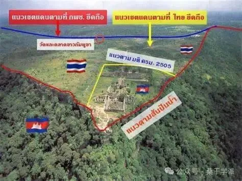 國界線的劃分紅線——山脊線,柏威夏寺寺廟柬埔寨實控,