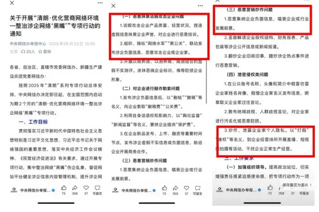 今年5月23日,中央網信辦啓動“清朗·優化營商網絡環境”專項整治行動,重點打擊涉企網絡“黑嘴”、惡意詆譭等行為,為企業合規溝通與糾紛解決劃出紅線。