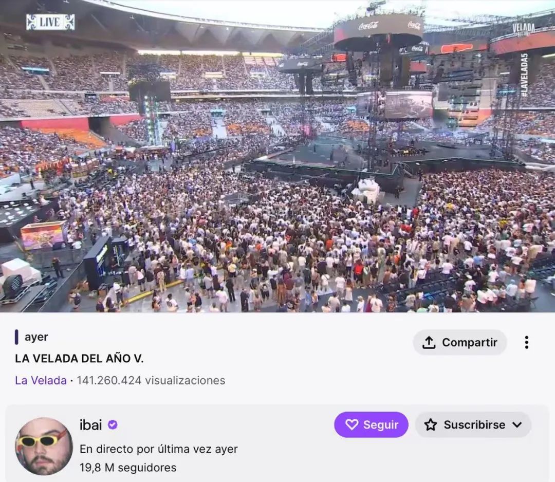 北京時間7月27日,一場名為“La Velada del Año V”(第五屆年度之夜)的跨界名人拳擊賽在西班牙塞維利亞舉行。這場由西班牙頂流網紅主播Ibai Llanos主辦的網絡狂歡在其個人twitch賬號上直播,同時在線觀看人數峯值(PCU)突破700萬,打破了Ibai的個人最高紀錄,熱度席捲西語地區。