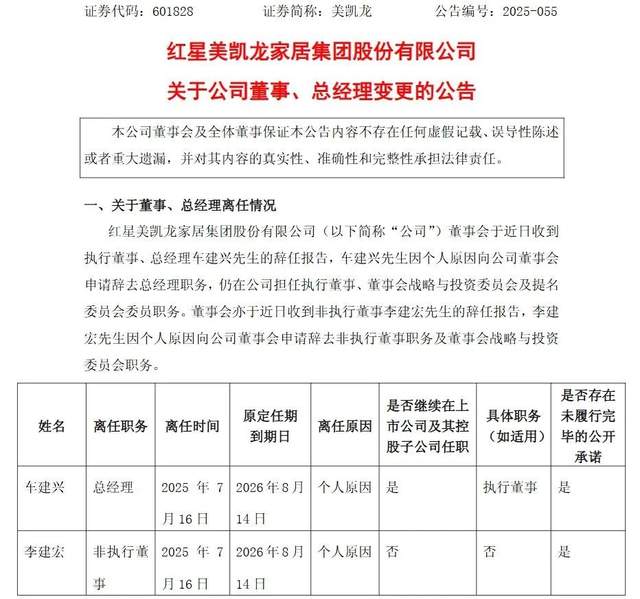 7月18日,車建興因個人原因辭去總經理職務,仍擔任執行董事等職。同日,非執行董事李建宏宣佈辭職,董事會迅速任命原執行董事、副總經理施姚峯為新任總經理。