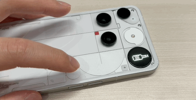 不光如此,Nothing 還給這個LED 單獨在背板上做了一個叫 Glyph 按鈕的壓感按鍵,讓用户能通過這個按鍵來跟 Glyph 陣列進行交互。