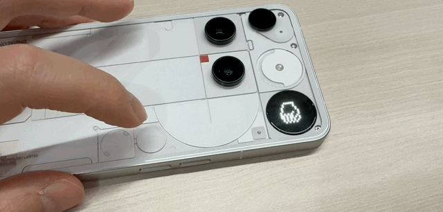 能顯示時間、當下的太陽狀態、手機電量、水平儀等等。在調節音量的時候,Glyph 陣列也會用實心圓顯示音量的大小,音量越大顯示的圓的面積就越大。