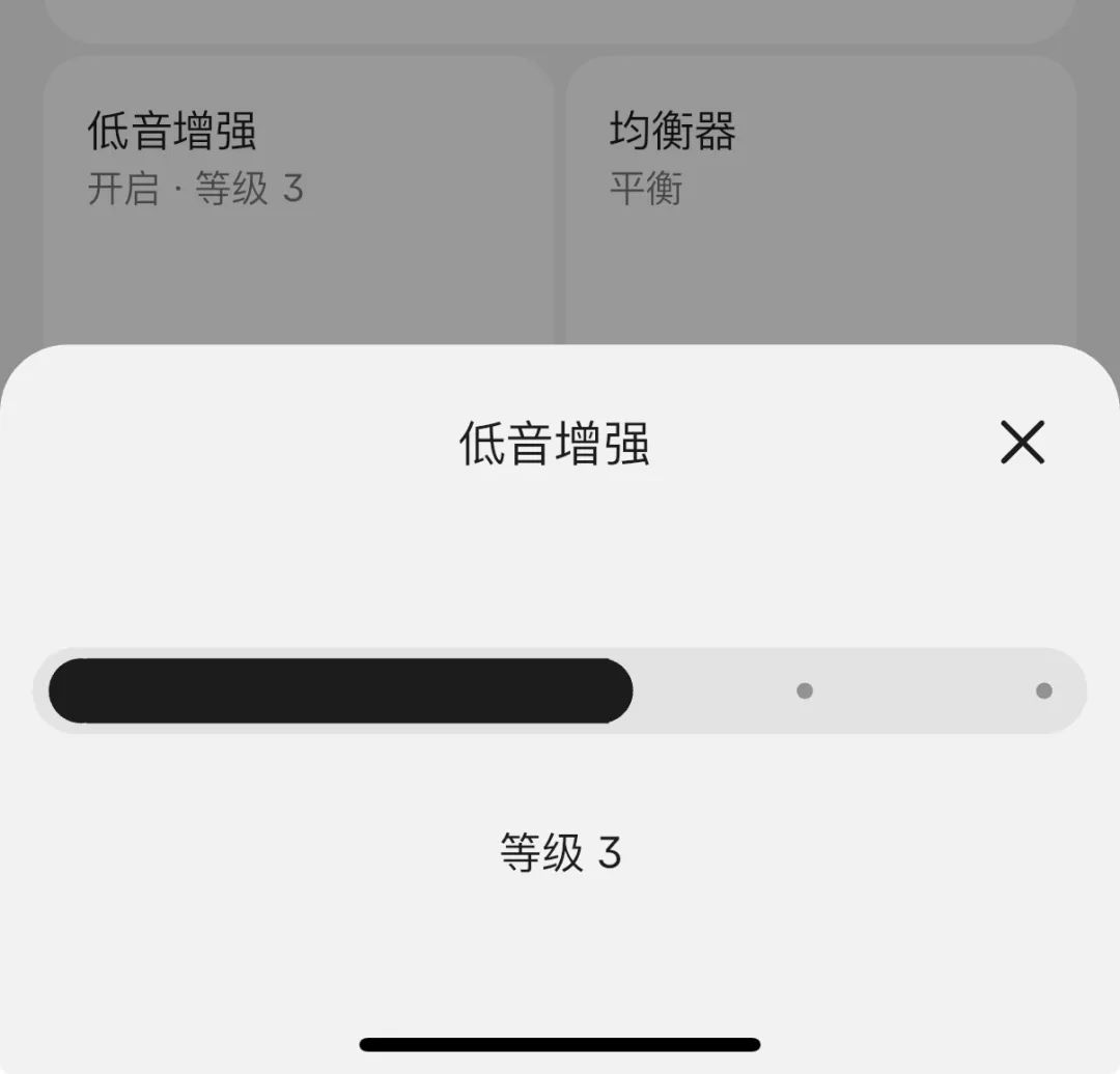 這裏我們把低音增強打開,讓大夥兒聽一下 不同檔位的低音增強下這款耳機是什麼效果。