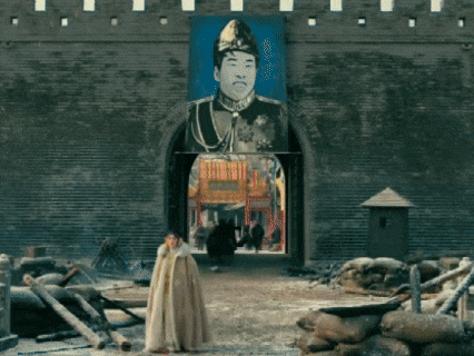 正待發作的洪大帥丟了北平倉皇而逃,牆頭草又在琢磨新主子的喜好。驚慌中坐定的觀眾看着台上置生死於度外的“霸王別姬”品着戲,老班主親自助陣。而影片留給大家的卻是一個耐人尋味的收尾: