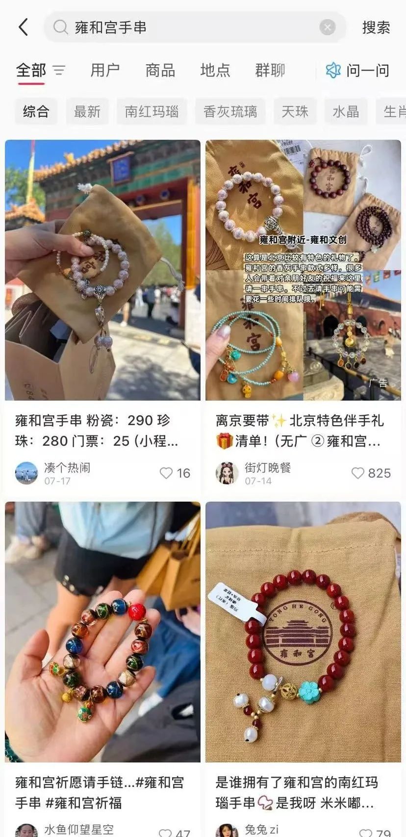 比如,普陀山在淘寶賣起了手串、手鍊等文創產品,五台山在淘寶上架了“五路財神”掛件和手繩……近年來,寺廟“周邊產業”越來越繁榮,雍和宮“香灰琉璃手串”,靈隱寺的“靈隱十八籽”等都成為寺廟周邊的成功案例。