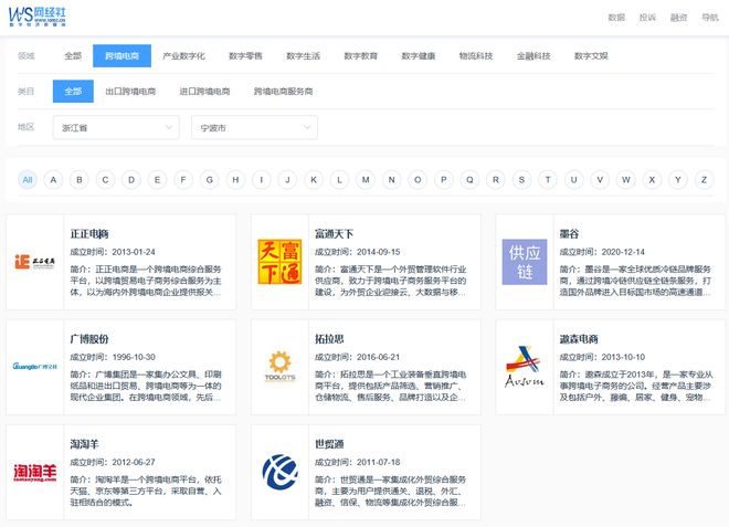 網經社企業庫收錄的寧波市共有跨境電商企業8家,包括正正電商、富通天下、墨谷、廣博股份、世貿通、拓拉思、遨森電商、淘淘羊等。