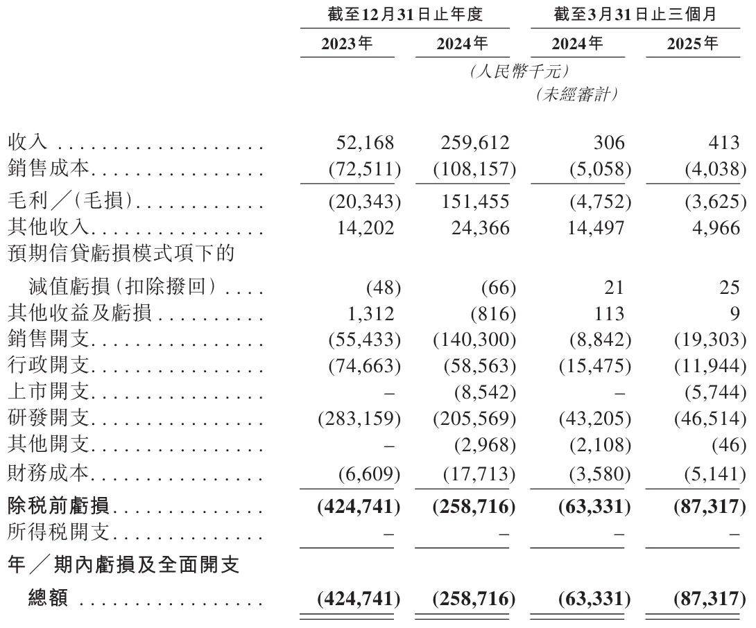 財務數據飯館,據招股書顯示,中慧生物2023-2024年累計虧損6.84億元,2025Q1虧損再擴至8730萬元。截至2025年3月,中慧生物的現金僅1.15億元,而短期債務高達2.54億元,償債缺口明顯。2024年中慧生物研發投入2.06億元,佔營收79%;2025的Q1研發支出達收入的112倍。