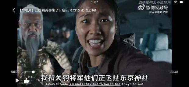 其實呢,這只是為另一部抗戰題材的電影《731》製作的AI宣傳片,短短幾十秒,大家自己去體會一下,這短短幾十秒是不是更能代表中國人的心聲呢?