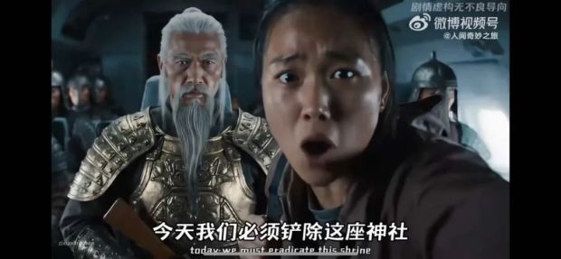 最後,我給大家介紹一部由AI技術製作的短片“三國版滅日”,這才代表了中國人對日本的真正心聲,某年某月某日,中國終於派出了諸葛亮和關羽、張飛,率領大軍直搗東京,直搗靖國神社——用短片裏的話説:我們必須剷除這座神社!