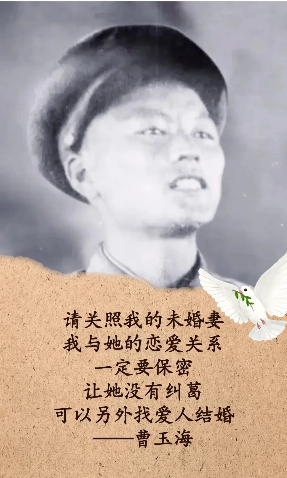 曹玉海:請你關照我的未婚妻,我和她的戀愛關係一定要保密,讓她沒有糾葛,讓周圍的同志們不知道,另外讓她找愛人成婚……