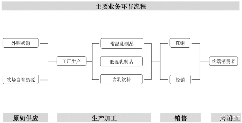 南方乳業以自行生產為主,部分產品採取委託加工形式。其生產環節主要包括牧場養殖和乳製品加工,公司建有乳品加工廠,來生產乳製品及含乳飲料產品。