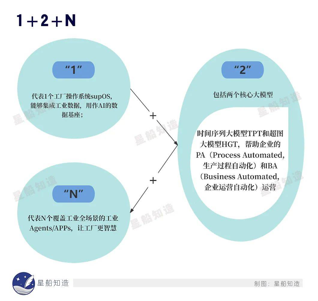 如上文所説,這些工業AI爆品只是工具,在工廠操作系統supOS的加持之下,最終融合成“1+2+N”工業AI驅動的企業智能運行新架構——也就是一個“生態平台”。