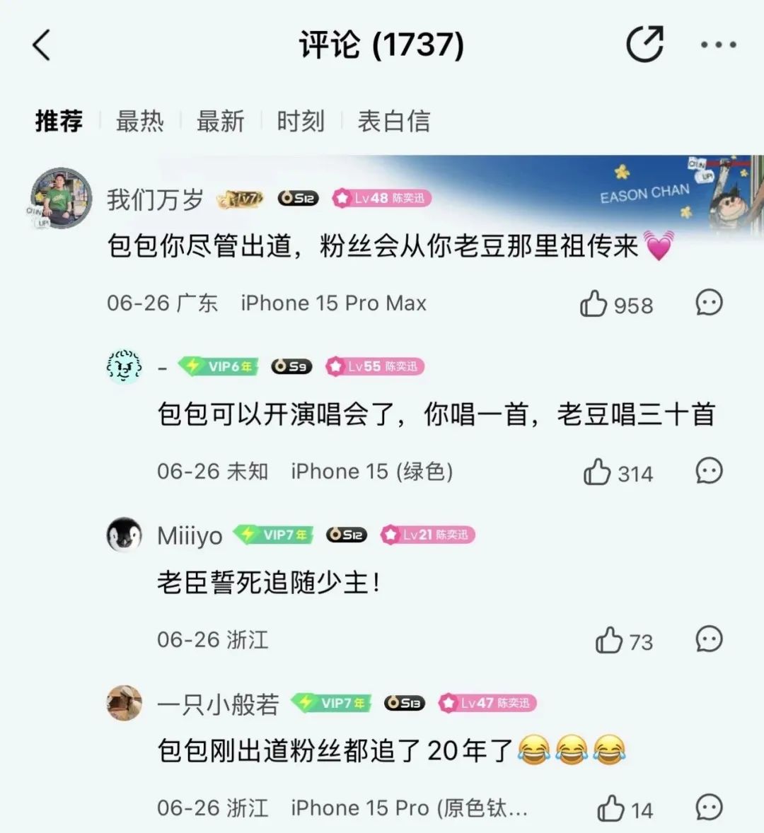 陳康堤新歌的評論區(注:包包是陳康堤的小名)