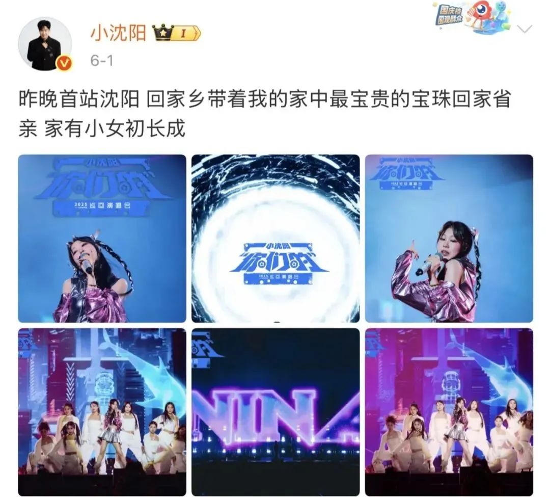小瀋陽似乎樂觀許多,“我們的家風就是不看成績”,甚至在自己的演唱會上與直播中,還會惡搞幾句女兒的歌,“美美桑內,一個勁地叭叭”。