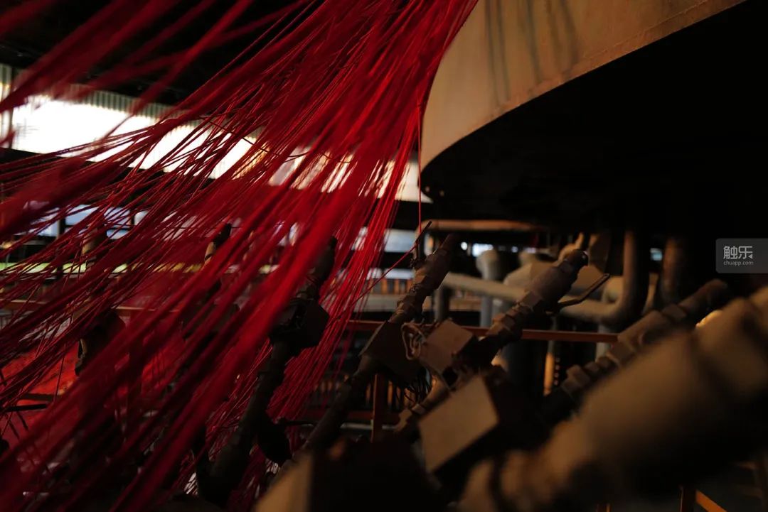 這些紅線都是棉線,啞光的,正紅色。“我們説這個場地是‘武俠朋克’,那紅線承擔的就是‘武俠’這部分的元素。”李增旭説,“類似的線有很多,但如果不是棉線,它看起來就沒那麼有東方韻味。”