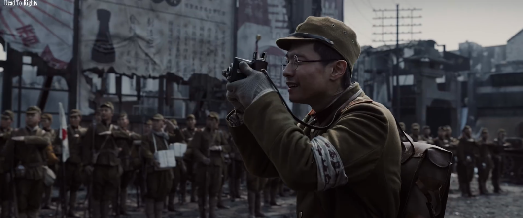 影片中,也有因為拍攝暴行的照片上了報紙,一羣日本人歡呼,以為是一件榮耀之事的場景。