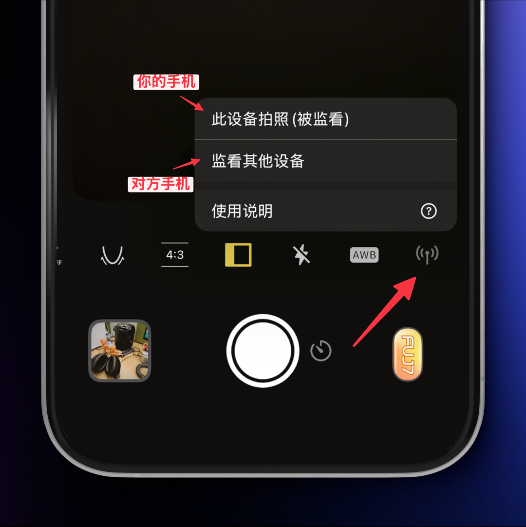 現在知道了吧,對方能在自己手機上,看到你的相機畫面。